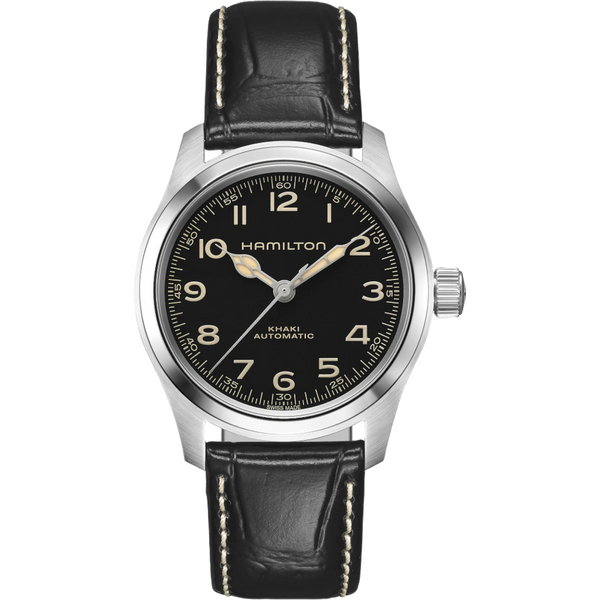 Megérkezett a Khaki Field Murph Auto 38 mm. A sci-fi egyik leghíresebb karórája, amelyet a rajongók „Murph” néven ismernek, most egy kompakt, 38 mm-es rozsdamentes acél tokban kapott helyet. A rendkívül jól olvasható fekete számlappal, a bézs, vintage stílusú Super-LumiNova® kidolgozású mutatókkal és a fekete bőrszíjjal a 42 mm-es elődjének legfontosabb esztétikai kódjait tükrözi. A 80 órás járástartalékkal rendelkező H-10 automata szerkezettel hajtott Khaki Field Murph Auto azok szívét rabul ejti, akik szeretik a kisebb órákat.